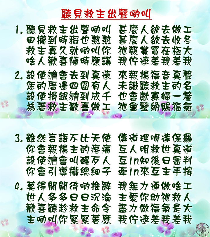 詩歌 : 聽見救主出聲啲叫 2. (錄音檔)