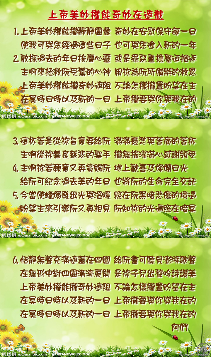 詩歌 : 上帝美妙權能奇妙在遮截