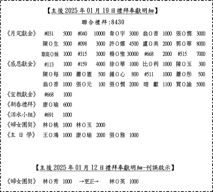 奉獻明細: