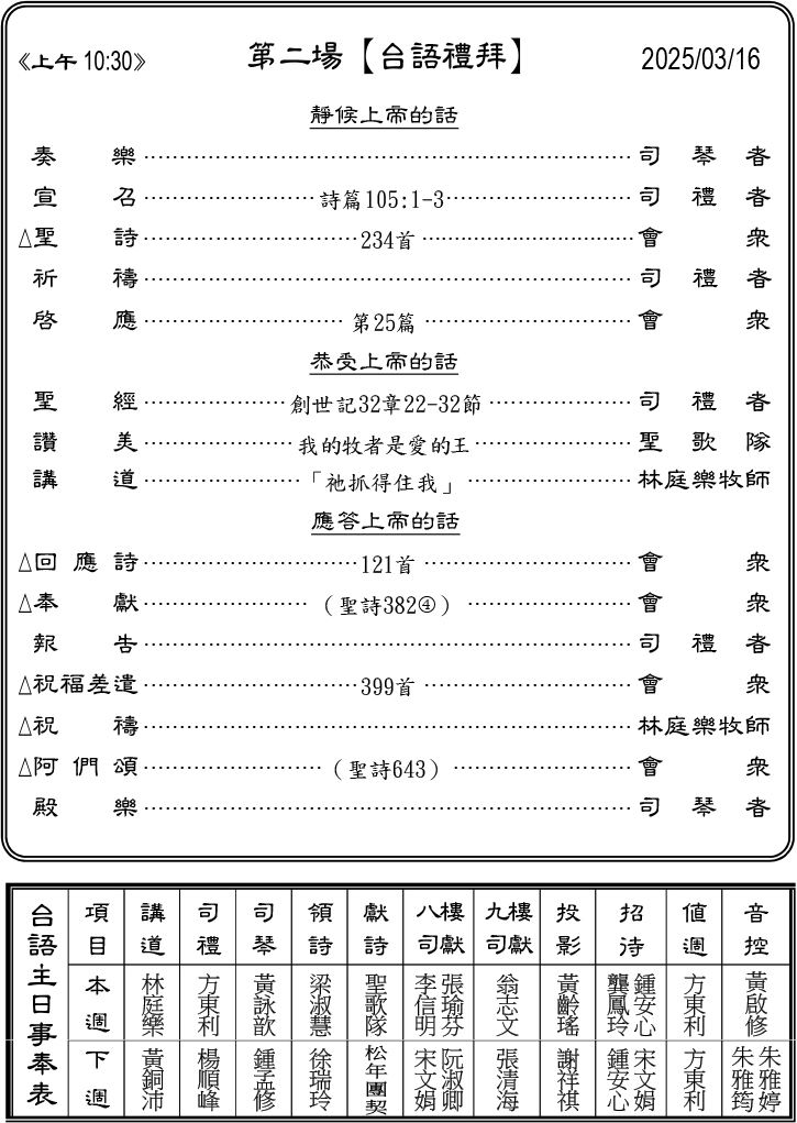 啟應=第19篇 宣召=詩篇25:4-6 聖詩=538、580、400