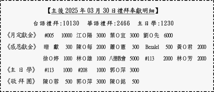 奉獻明細: