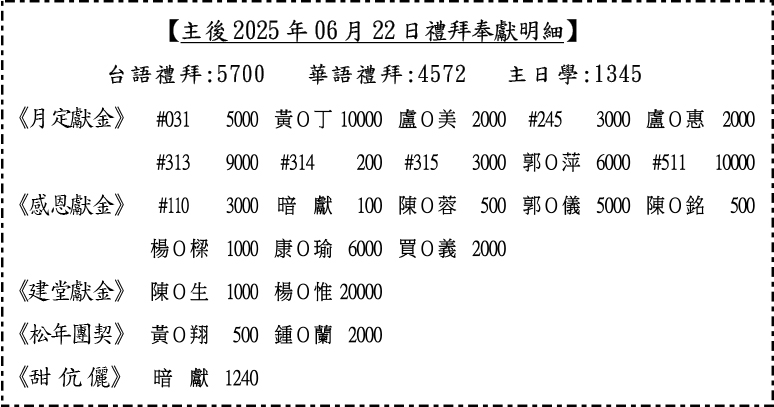 奉獻明細: