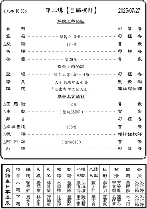 啟應=第35篇 宣召=詩篇119:166-168 聖詩=24,19,401