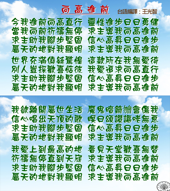 台語禮拜:上午10:45-12:00七樓副堂,一樓開放閉路電視。