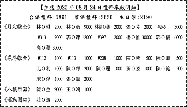 奉獻明細: