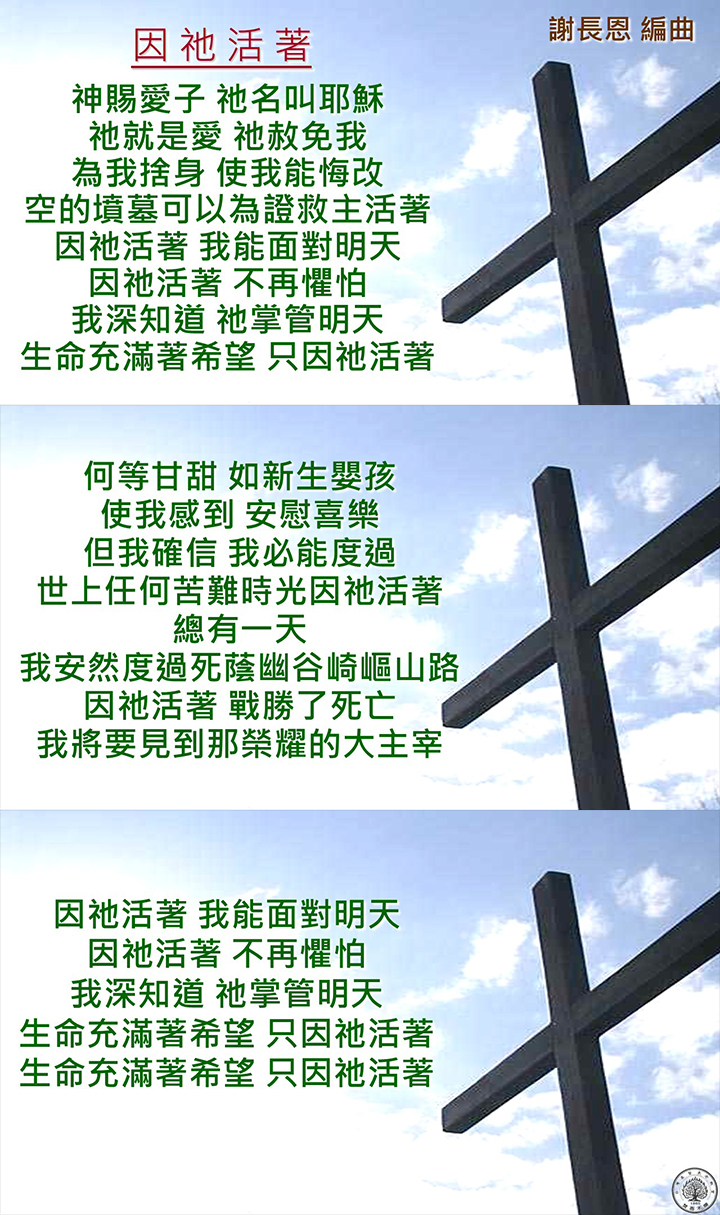 - 「從懷疑到相信」傳福音線上課程,2600元/人,報名請洽徐瑞玲長老。