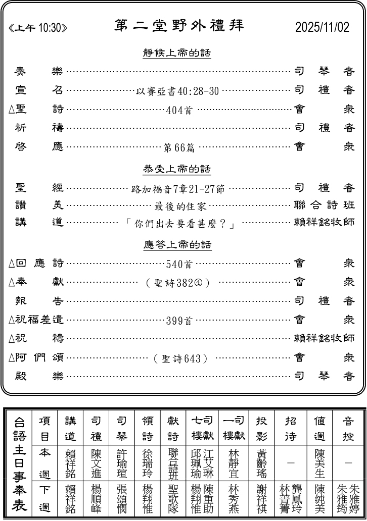 Posted on 2025 10 月 31, 證道: 林芳名牧師/賴祥銘牧師