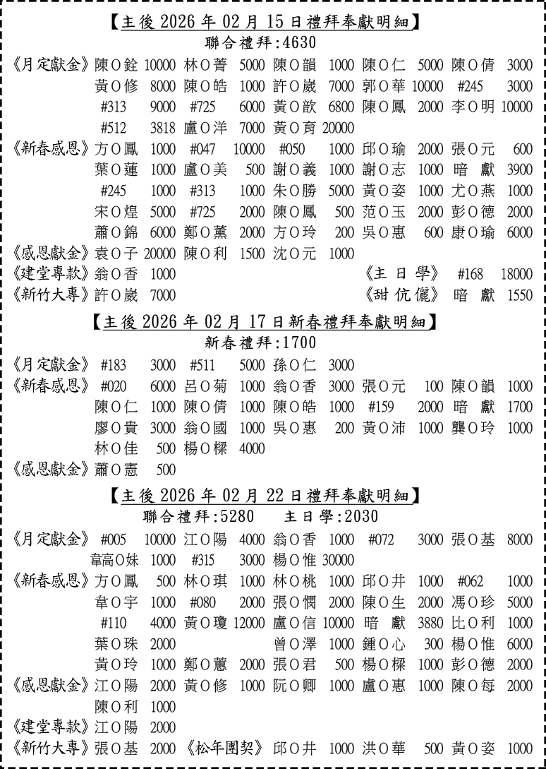 - 下週主日(3/8)兩堂禮拜中舉行聖禮典,請兄姊預備心參加。☆